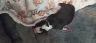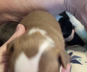 “Price includes first Vet visit, delivery of puppy by me, owner, registration certificate paperwork. Vet visit is at 6 weeks old. Dewormer starts at 4 weeks old. My breeding male is red and white and CKC Registered, and other male is Black Brindle and White and he is AKC Registered. My 2 females, one is CKC Registered and the other is North American Purebred Registry. In some cases, I can adjust cost. I don't ask for deposits. However I take a person at their word when they commit to a puppy. I expect full payment at time of delivery of puppy. Transportation cost is added up on location.”