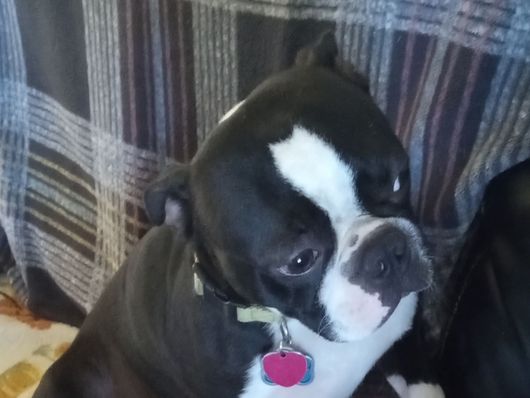 Roxy is a female Boston Terrier. Carefully selected as a great representative of her breed, James decided to make her part of their program. James has passed Good Dog’s screening process, which involved a review of their breeding practices, environment, and the mental and physical health of their dogs.