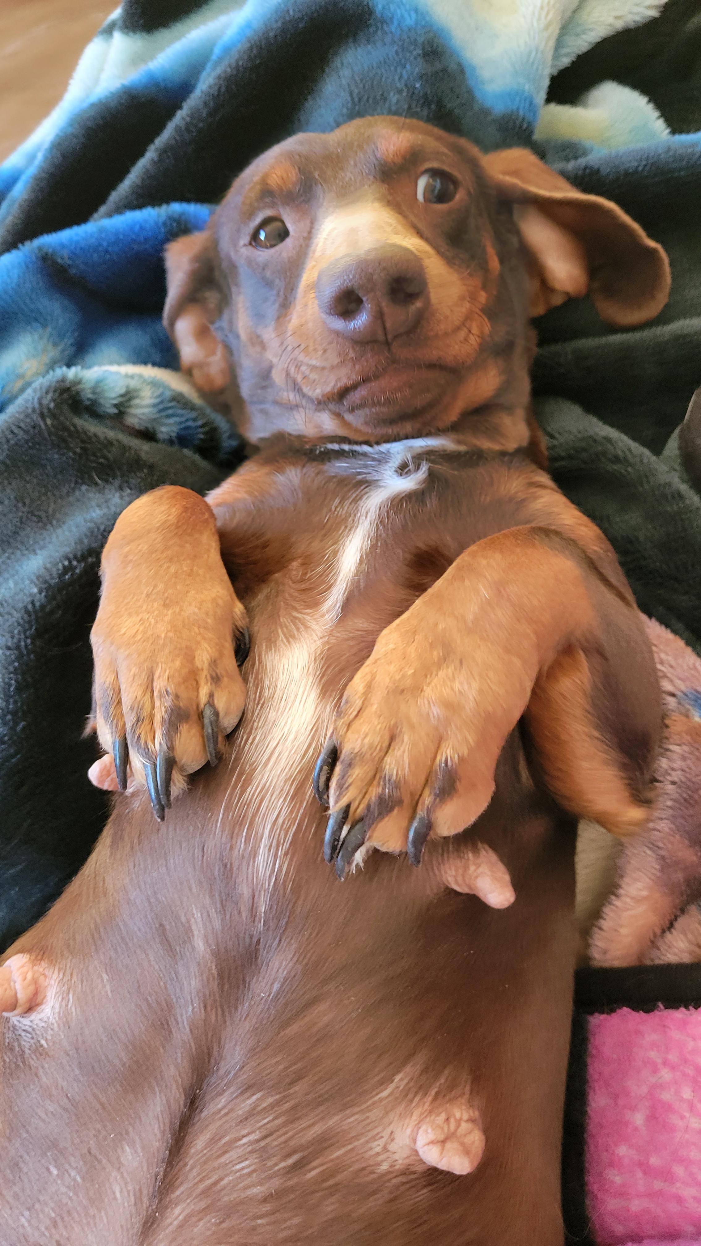 Moscow is a male Dachshund. Carefully selected as a great representative of his breed, Jacinda decided to make him part of their program. Jacinda has passed Good Dog’s screening process, which involved a review of their breeding practices, environment, and the mental and physical health of their dogs.