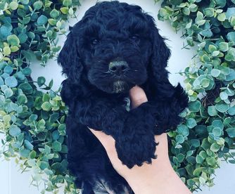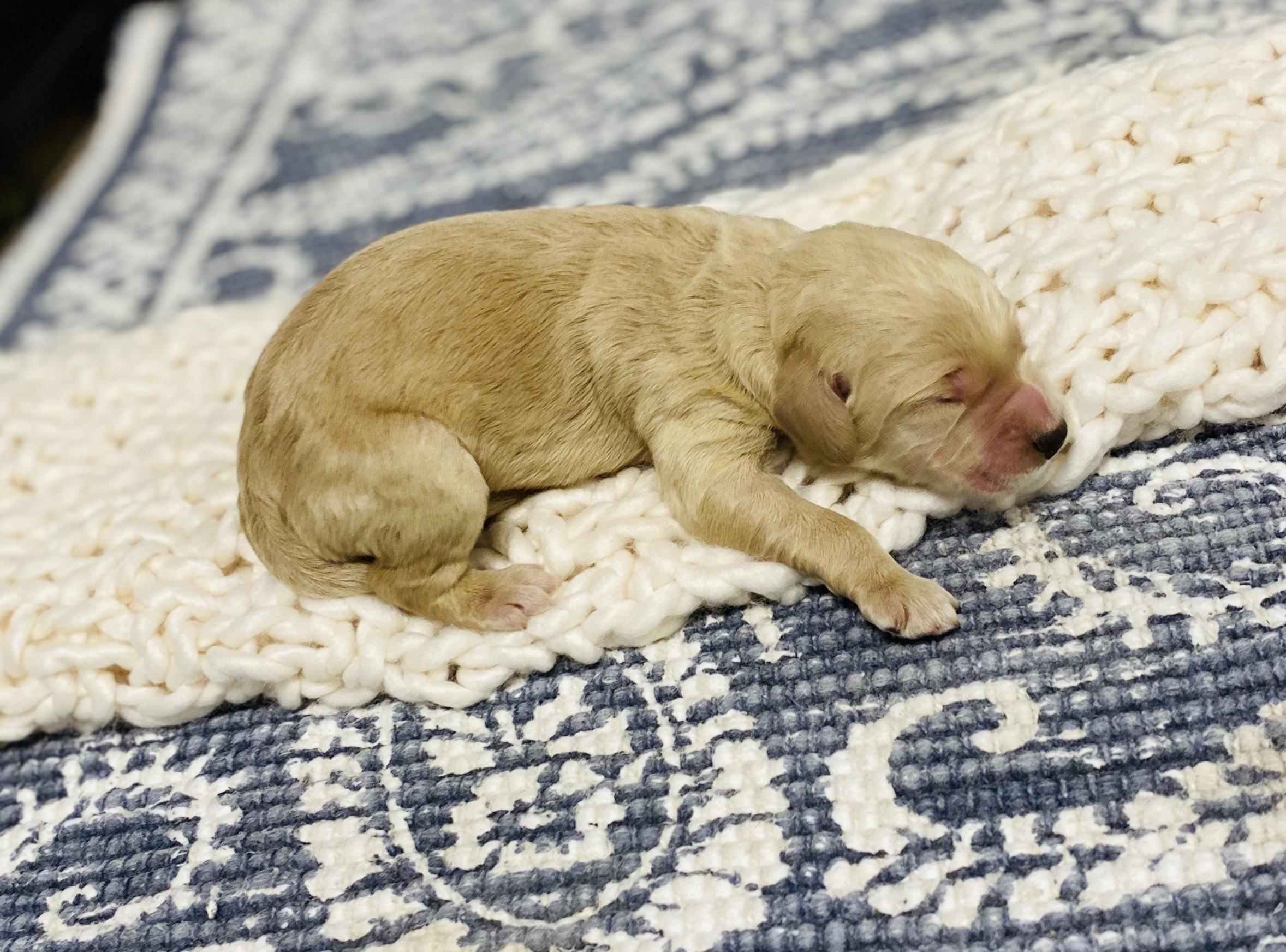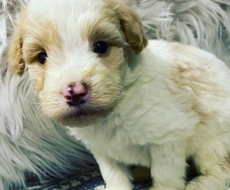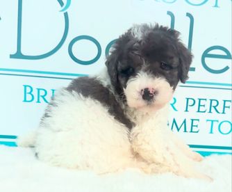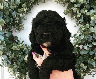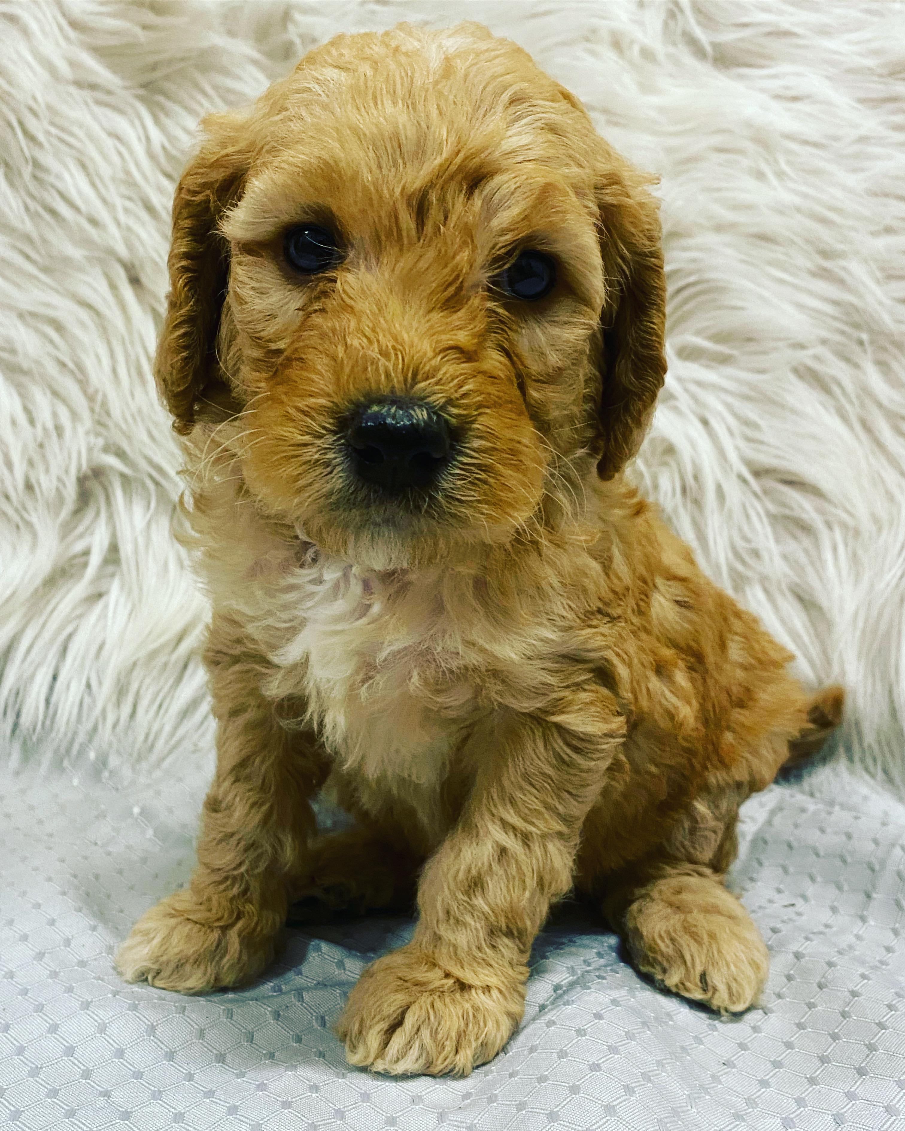 Our Cockapoo puppies include red and white, red, golden, cream, black and white, buff, and brown. Goldendoodle puppies include cream, apricot, red, and black. Bernedoodle puppies include sable, black, black and white, tri-color, and phantom. Colors will vary depending on the parent dogs.