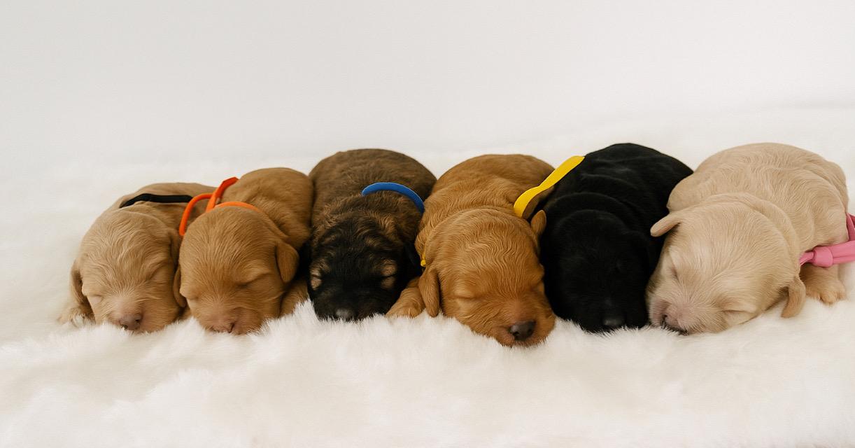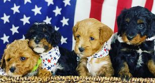 Our Cockapoo puppies include tiny and mini sizes. Goldendoodle puppies include miniature, medium, and standard sizes. Aussiedoodle puppies are mini size. Bernedoodle puppies include tiny, mini, and medium sizes. Sizes will vary depending on the parent dogs.
