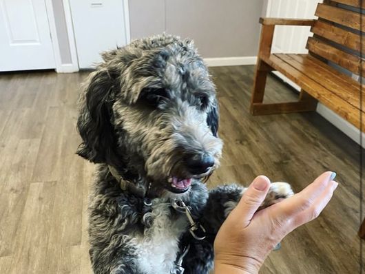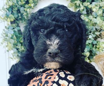 Phe is a female Bernedoodle. Carefully selected as a great representative of her breed, Ashley decided to make her part of their program. Ashley has passed Good Dog’s screening process, which involved a review of their breeding practices, environment, and the mental and physical health of their dogs.