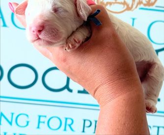 Clover is a female Aussiedoodle. Carefully selected as a great representative of her breed, Ashley decided to make her part of their program. Ashley has passed Good Dog’s screening process, which involved a review of their breeding practices, environment, and the mental and physical health of their dogs.
