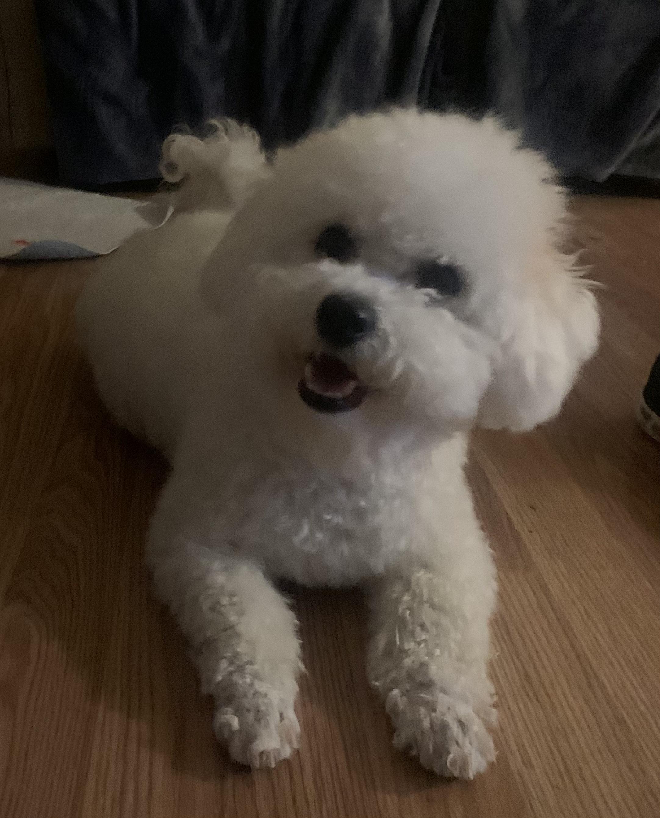 Annie is a female Bichon Frise. Carefully selected as a great representative of her breed, Jacenta decided to make her part of their program. Jacenta has passed Good Dog’s screening process, which involved a review of their breeding practices, environment, and the mental and physical health of their dogs.