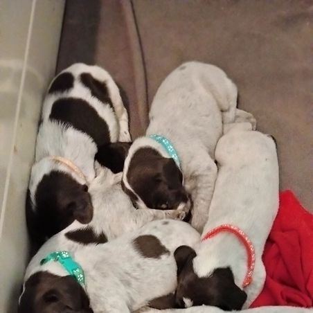 I'm Karen M., the breeder behind Jagged Edge German Wirehaired Versatility Dogs located in Burnet, TX. Ethically bred to the AKC standard with all health clearances completed. Active member of the GWPCA and NAVHDA International. Our show dogs hunt and our hunting dogs can finish a show championship. Unlimited breeder support for the lifetime of your dog.