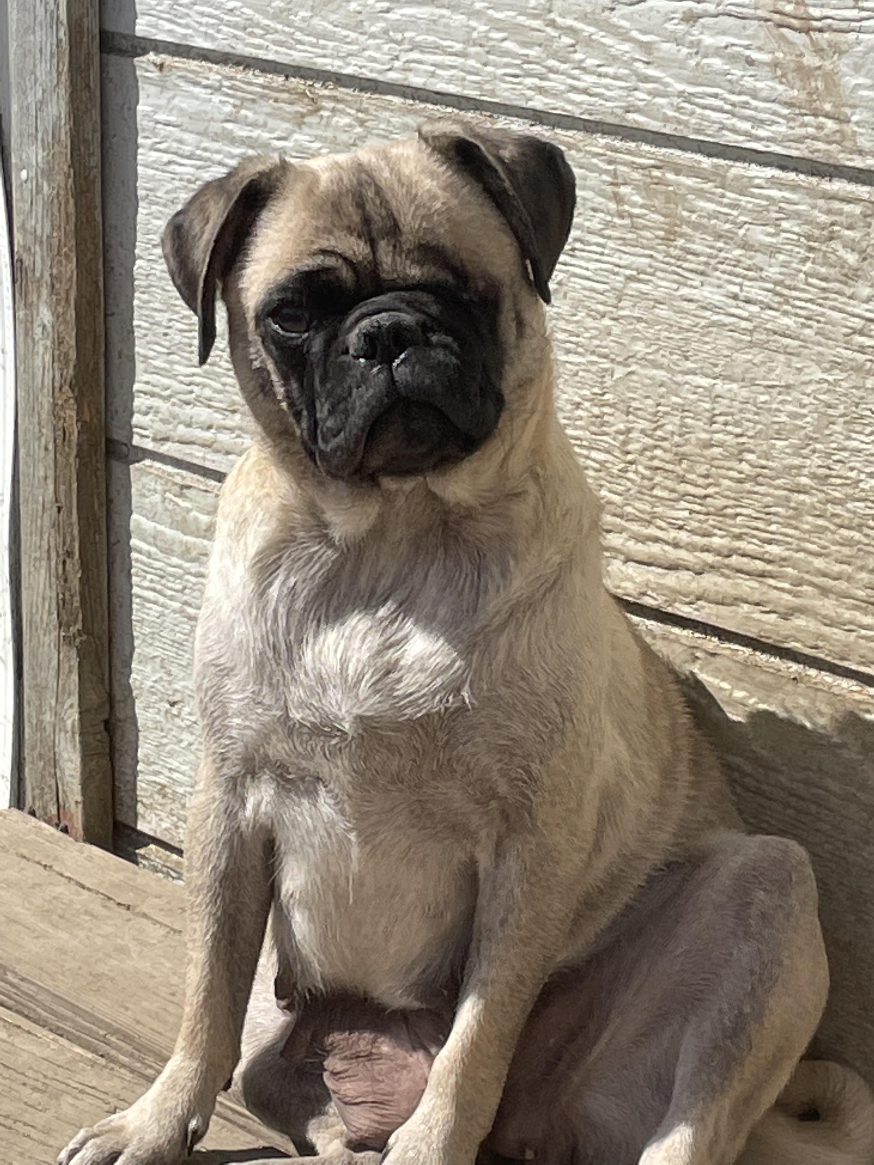 Darla is a female Pug. Carefully selected as a great representative of her breed, Jacob decided to make her part of their program. Jacob has passed Good Dog’s screening process, which involved a review of their breeding practices, environment, and the mental and physical health of their dogs.