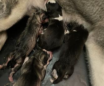 Our Pug puppies include black and fawn. Siberian Husky puppies include brown and white, gray and white, and black and white. Colors will vary depending on the parent dogs.