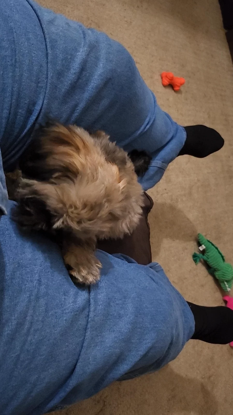 We introduced the puppies to the rest of the family. They spent an hour with the family and slept like a long afterwards. 😂