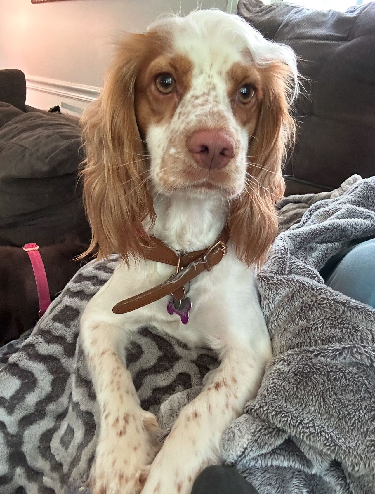 Lucy is the sweetest girl ever! She loves her people so very much and is definitely an “in-your-pocket” kind of dog. She is very smart and learns quickly. Has a very sweet and calm personality. Her dad comes from a long time of fowl hunters so she loves to retrieve! Registered and vet checked.