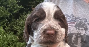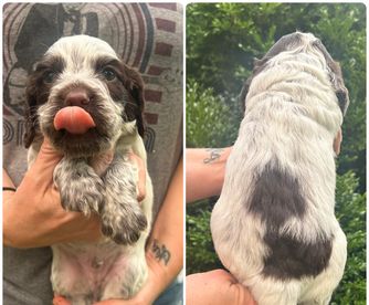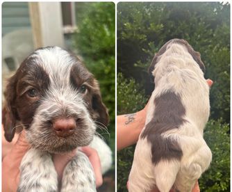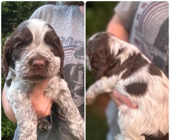 Our puppies include brown and white, brown, buff and white, buff, and blue roan. Colors will vary depending on the parent dogs.