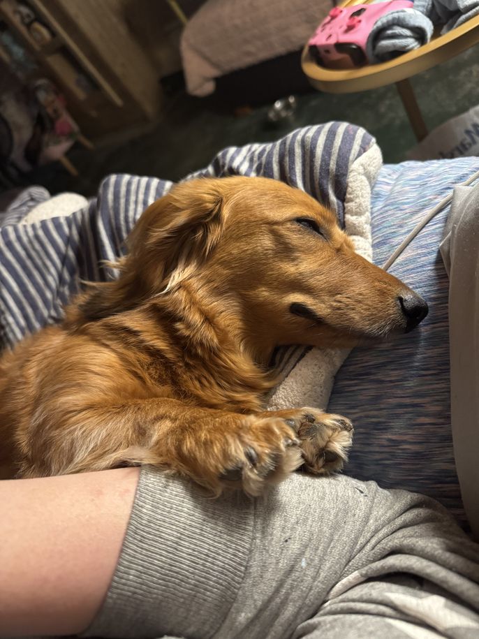 Saffron/steady is a female Dachshund. Carefully selected as a great representative of her breed, Amber decided to make her part of their program. Amber has passed Good Dog’s screening process, which involved a review of their breeding practices, environment, and the mental and physical health of their dogs.