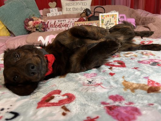 Teddy is a male Dachshund. Carefully selected as a great representative of his breed, Amber decided to make him part of their program. Amber has passed Good Dog’s screening process, which involved a review of their breeding practices, environment, and the mental and physical health of their dogs.