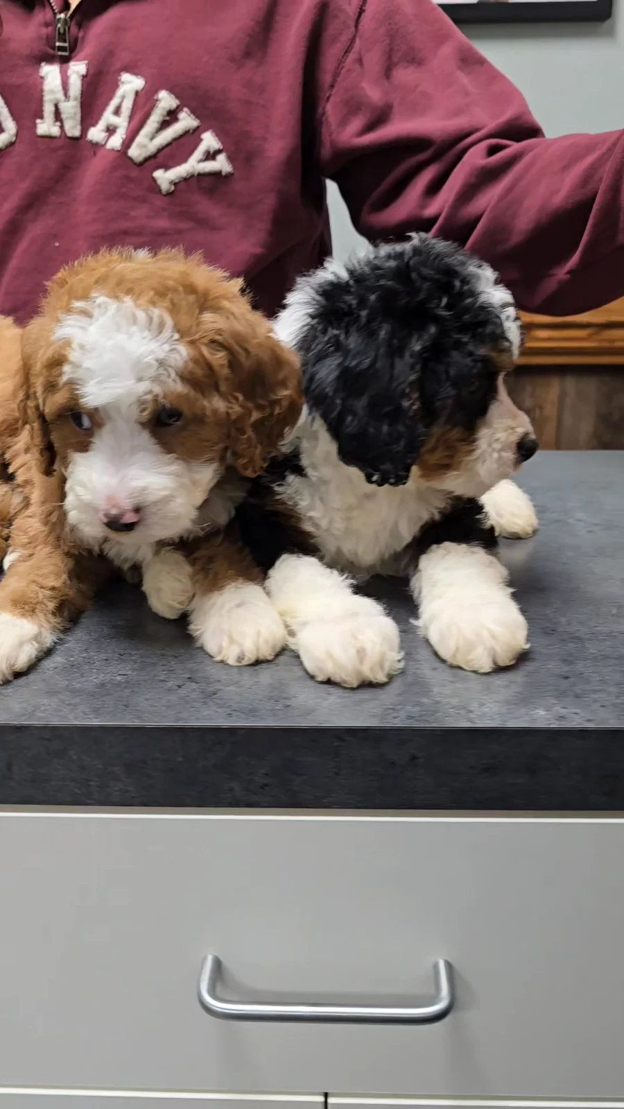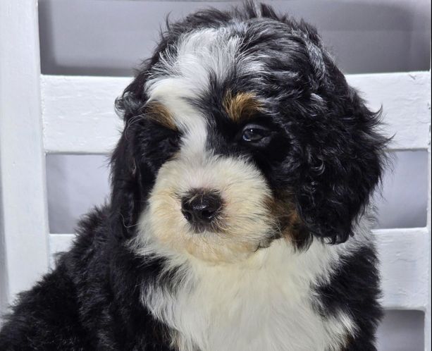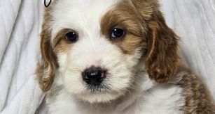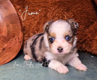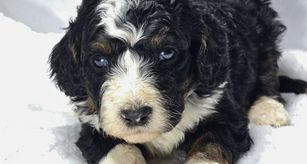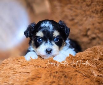 Our Miniature Australian Shepherd puppies include blue merle, black tri, red tri, and red merle. Aussiedoodle puppies include sable, brown and white, blue merle, red merle, black phantom, black tri-color, and red tri-color. Bernedoodle puppies include black, black and white, tri-color, phantom, blue merle, and merle. Cockapoo puppies include merle, cream, buff and white, buff, brown white and tan, brown and tan, brown, and black and tan. Colors will vary depending on the parent dogs.