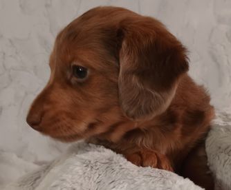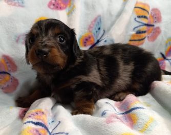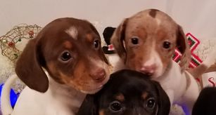 Our puppies include red, chocolate, chocolate and tan, black and tan, and dapple. Colors will vary depending on the parent dogs.