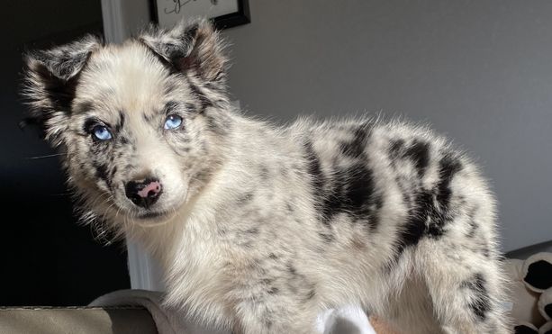 Our puppies are blue merle. Colors will vary depending on the parent dogs.