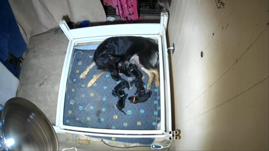Look At green collar he moves fast toward pole then turns around heading back to momma no collar born 3 hrs after the last one she’s a power house been on tit ever sense!