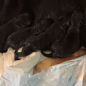 Sarah had her litter for Monday, October 27 five beautiful girls and two beautiful boys solid black