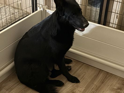 Rex is three-quarter DDR lines is a sweet boy. He carries the long coat gene very playful, loves his puppies, housebroken pure black