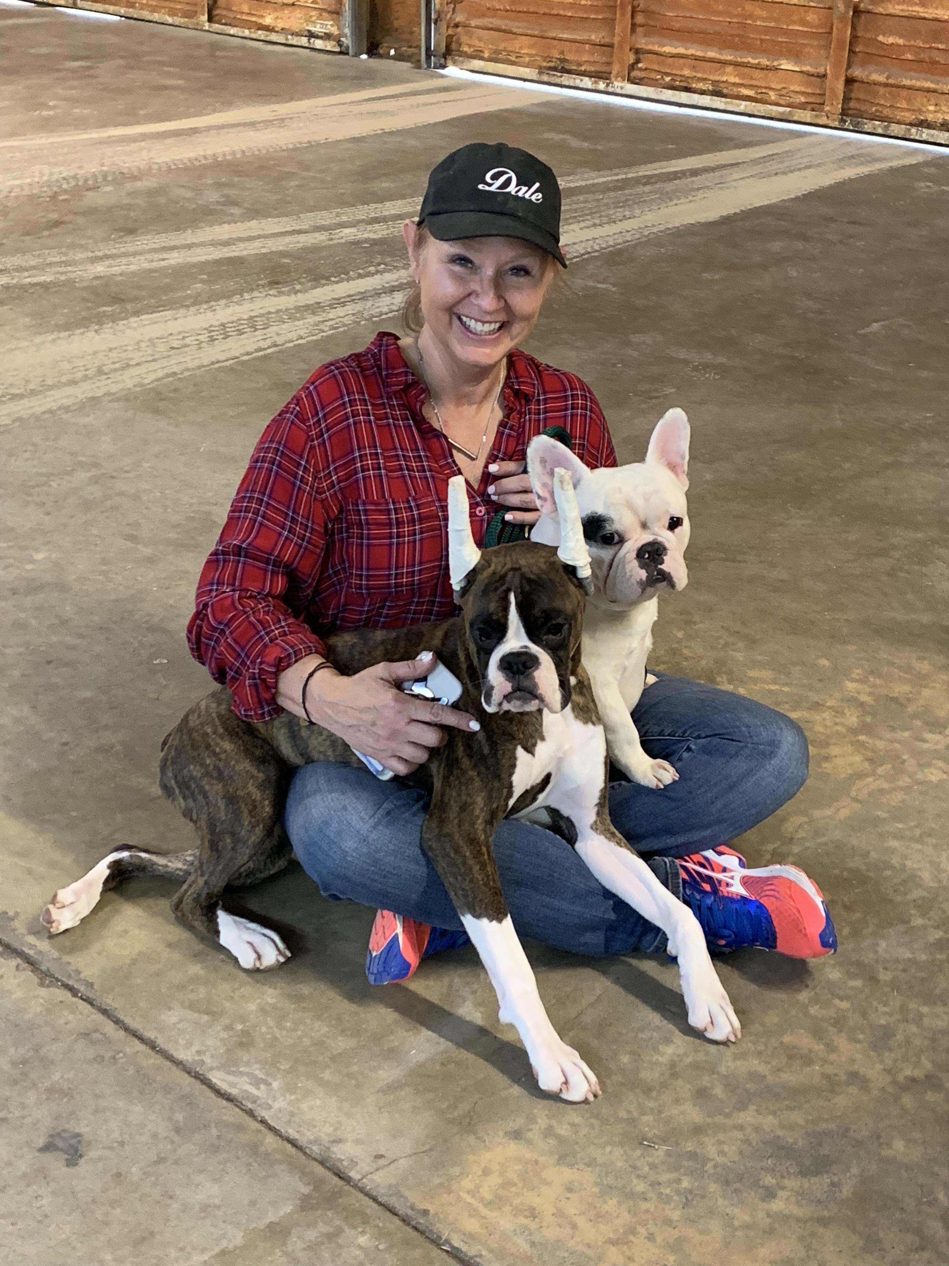 Our Boxer puppies include fawn and brindle. French Bulldog puppies are brindle. Colors will vary depending on the parent dogs.