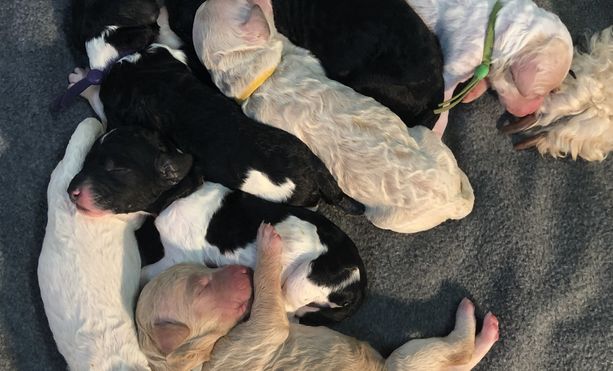 Our puppies include cream, apricot, black, and parti. Colors will vary depending on the parent dogs.