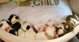 Our breeding program is special because Juniper and Bullet make it special. They are two of the greatest dogs, and exhibit only the best qualities of their breed; Juniper is a brown and white parti has a brown nose and brown eyes, Bullet is a black and white parti with a black nose and dark brown eyes we are hoping for puppies that better the breed! They both also have the belton genetic mark!