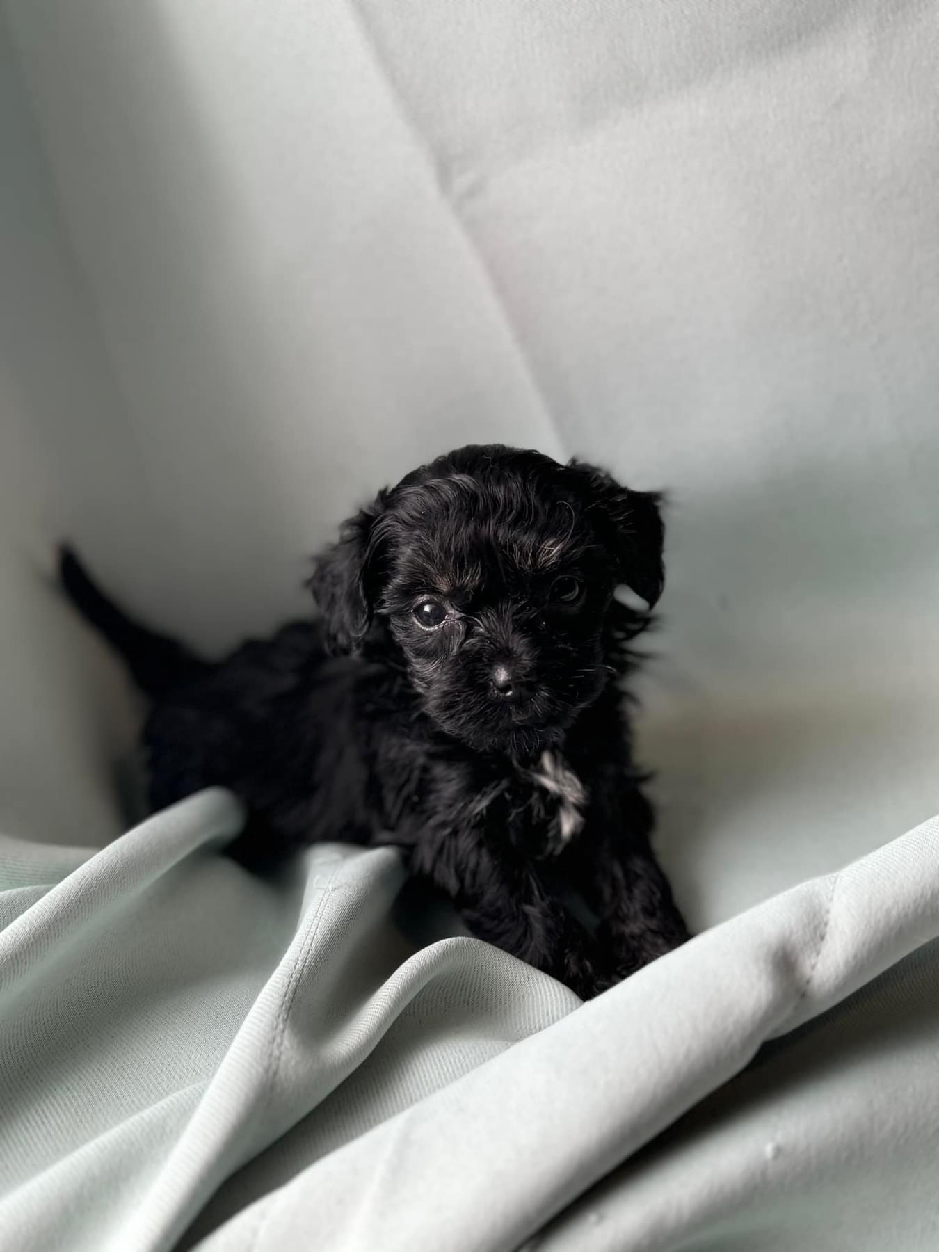 Our Assorted Doodle Crosses puppies are black and white. Yorkshire Terrier puppies are chocolate, tan and white. Colors will vary depending on the parent dogs.