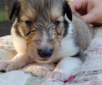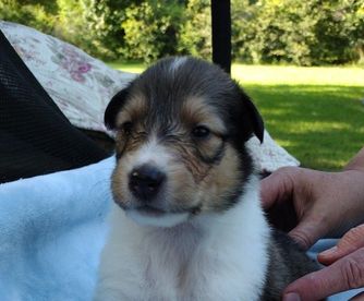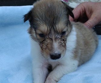 Collie puppies have rough coats. Coat types may vary depending on the parent dogs.