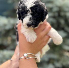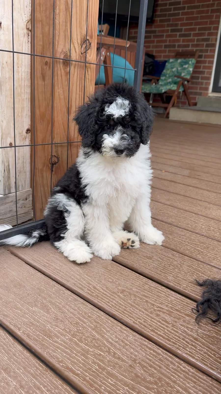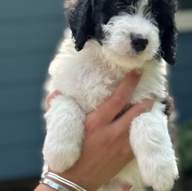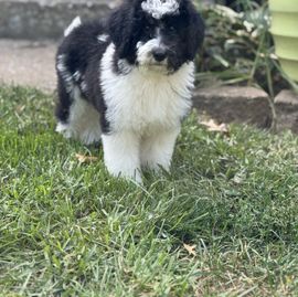 Our Bernedoodle puppies include mini, medium, and standard sizes. Aussiedoodle puppies are mini size. Double Doodle puppies are medium size. Sizes will vary depending on the parent dogs.