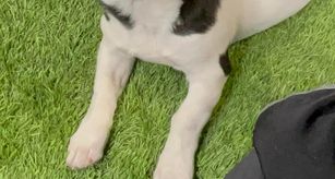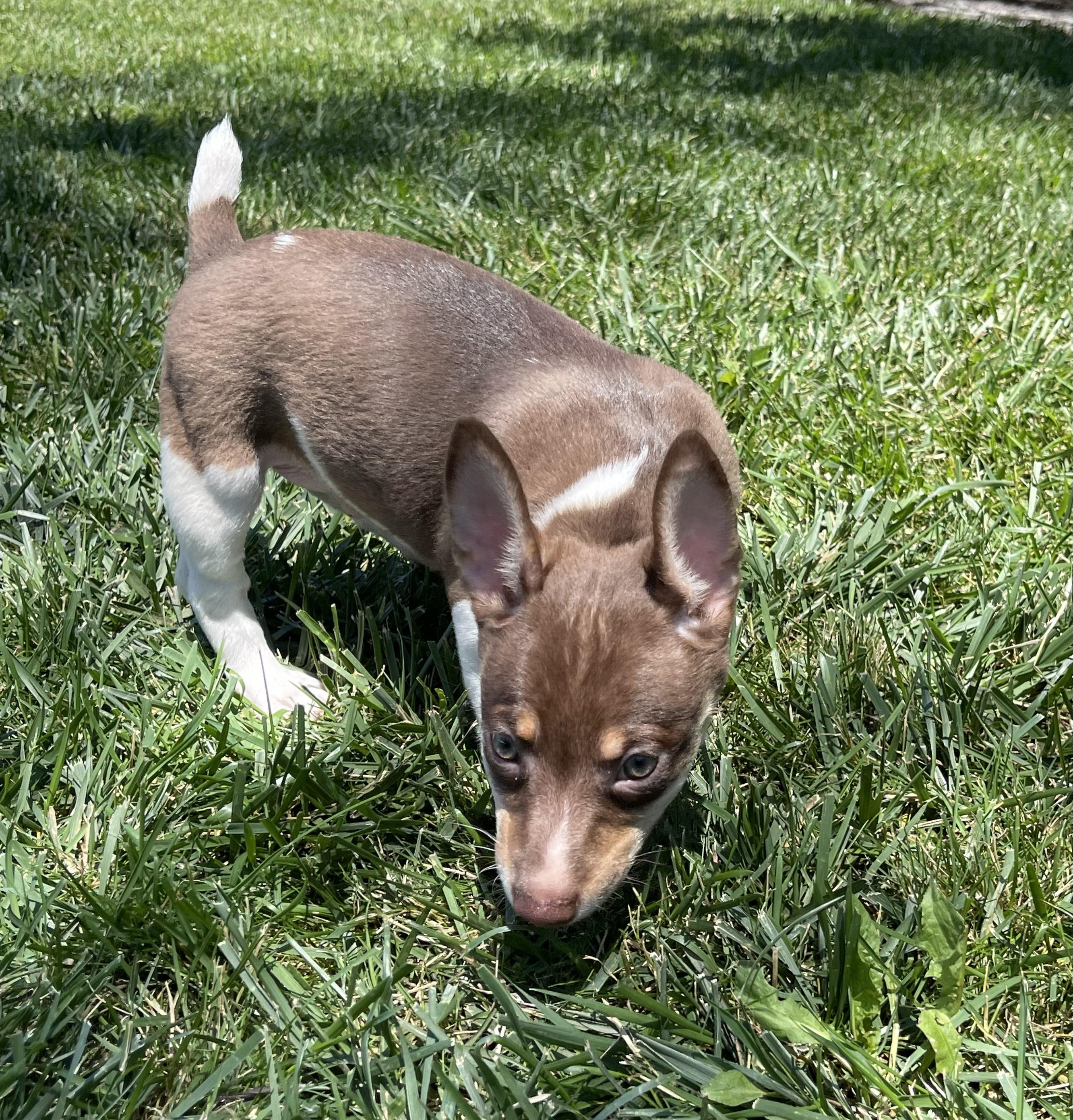 Our puppies include black and white, blue and white, white and chocolate, white and blue, and white and black. Colors will vary depending on the parent dogs.