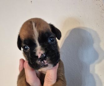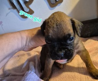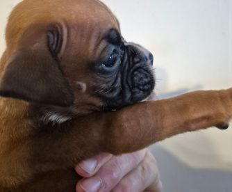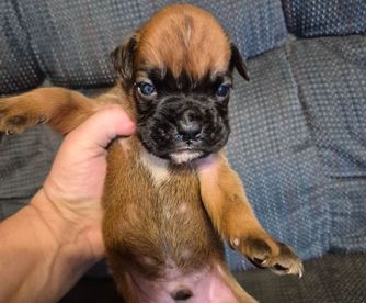 April was amazing. I contacted her sharing stories of my previous boxer telling her what I was looking for, sharing the name of the puppy I was looking for and the look and characteristics of what I was looking for. She gave me updates as to when litters were due, sent me photos and described the parents and was very flexible as to my choices. I said I wanted a puppy to match the name “Ripley”, and wanted a new best friend, a flashy fawn with a strong personality, a little sassy, a little hyper, playful, but loyal, loving, clingy, and a licker… I wasn’t planning to get a puppy so soon after my last boxer passed away a year ago, but was so lonely and started looking and was not happy with several of the breeders and was also not having luck trying to adopt. I felt April was very thorough and I was confident the parents were health checked and she was an experienced breeder. She also said if I changed my mind, it was not a problem, or if there was not my “Ripley” in one of the litters I could switch or wait for a later liter. Ironically two of her dogs gave birth the same day. When she held “Ripley” up, shortly after she was born, I knew she was the one. I had never picked a dog without first going in person, but I saw her and just knew. She sent some photos a few days later and about a week or so later I finally said I think she’s my Ripley. She sent me photos and videos weekly and replied to any questions I had, I FaceTimed. She was kind enough to drop her off a couple days ago and this puppy literally has been attached to me since. We’re inseparable. She’s literally everything I asked for.
