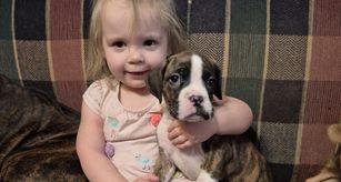 First if all, my puppy is perfection! She is an absolute gem of an addition to my family. Calm, confident, cuddly, and playful, she is a genuine balance of every trait you want in a pup. I’ve had boxers all my life, and she is truly special. April was wonderful to work with, and authentic in each interaction. She didn’t pose the puppies or filter/light them in any altered way, which (in my opinion) offered transparency and heart. She sent me a candid picture in their natural element each time I asked, and gave me any and all information about my pup’s parents. While I will continue to donate to many, many rescue organizations, I fully support April if you are looking to welcome a boxer puppy into your family.