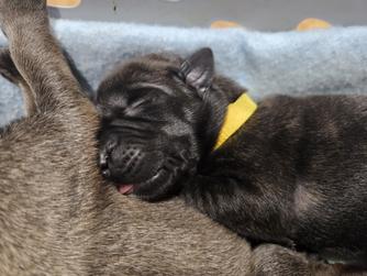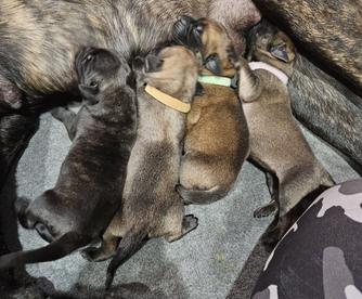 Our puppies include fawn and brindle. Colors will vary depending on the parent dogs.