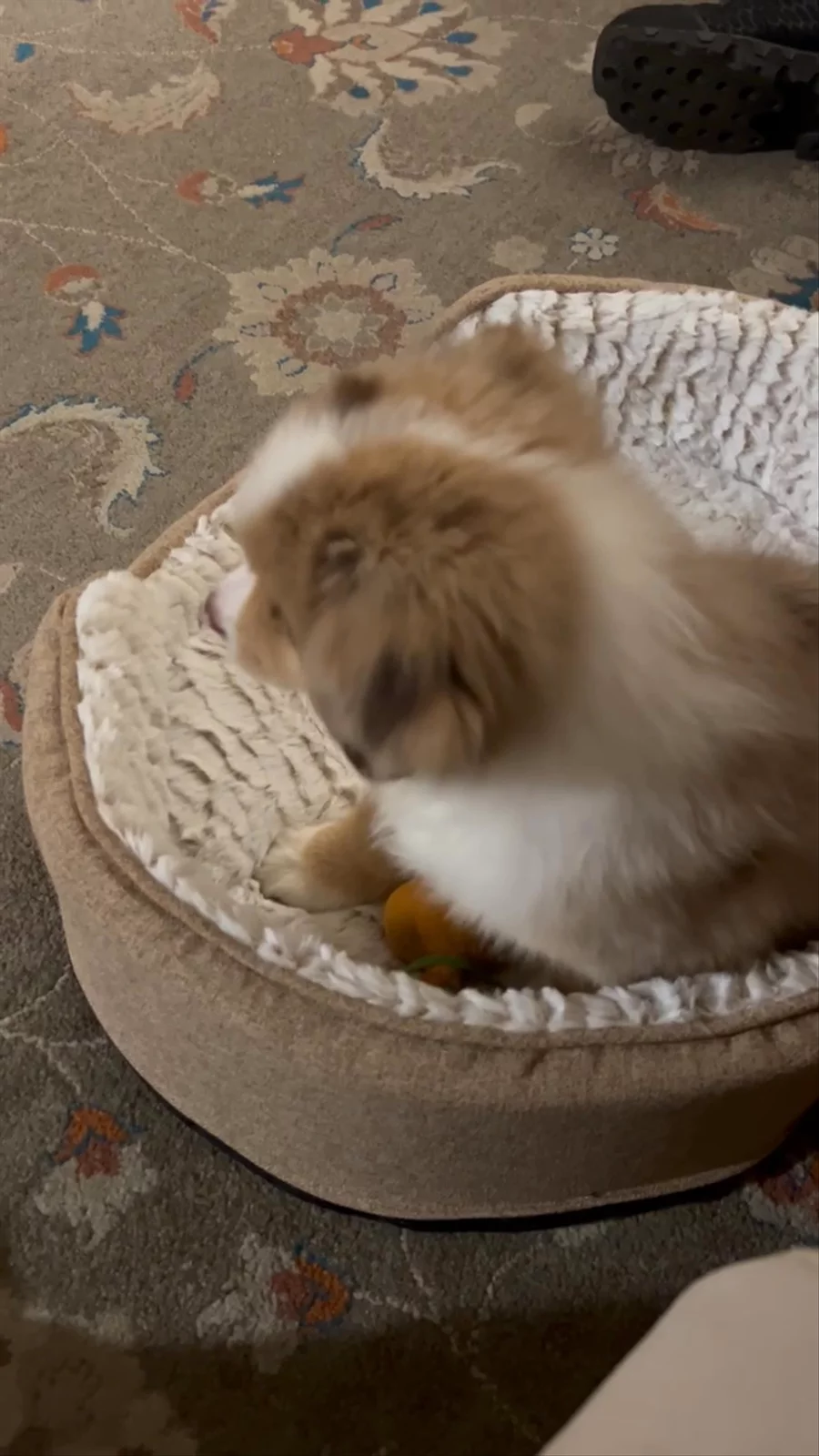 Ginger is affectionate. She will put the top of her head in my chest and wrap her paw around me, like a hug, and just rest there a moment. Then, pull back and lick my face too much. She’s playful, but very gentle… never too rough with children. She loves kids and thinks they are her pack.