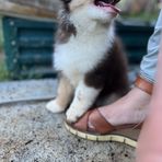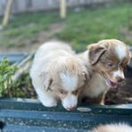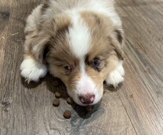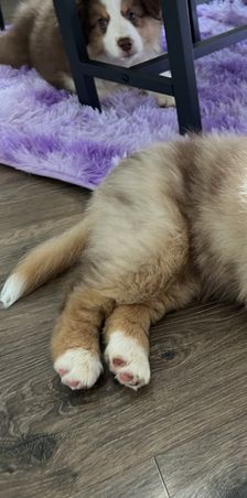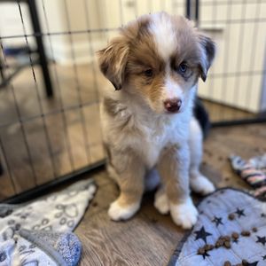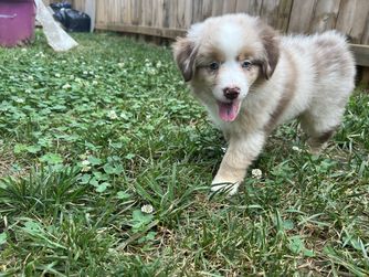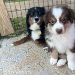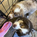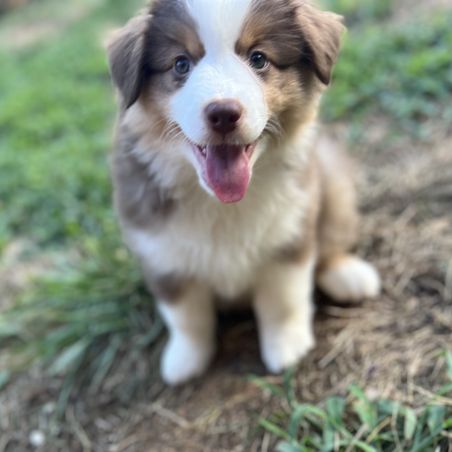 Our puppies include red tri-color, black, red merle, and blue merle. Colors will vary depending on the parent dogs.