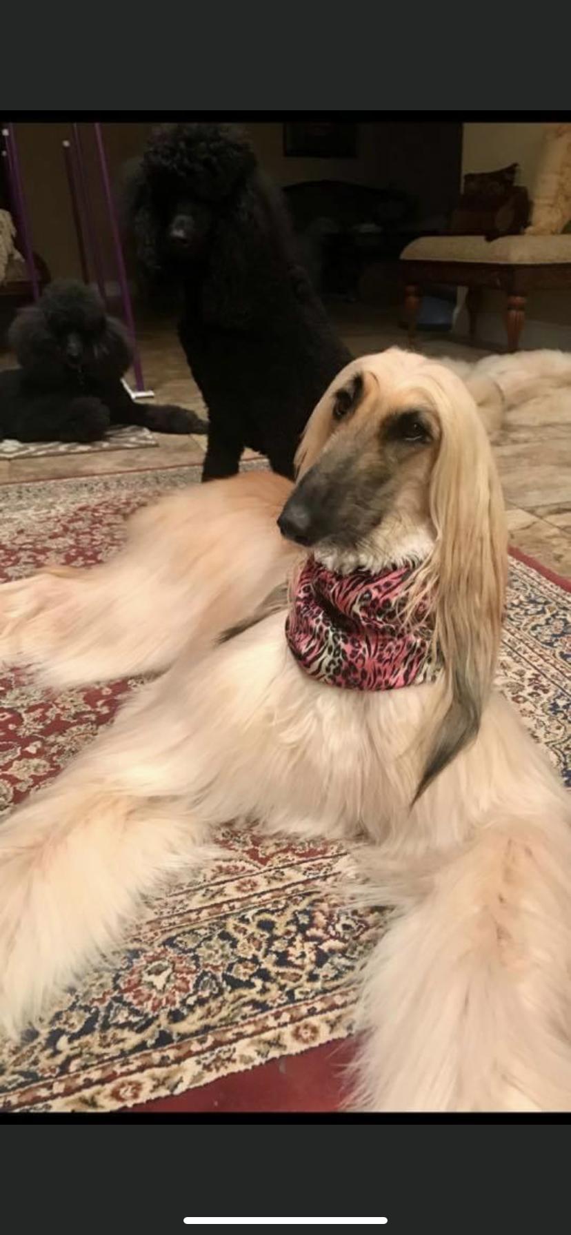 Luna is a female Afghan Hound. Carefully selected as a great representative of her breed, Jennifer decided to make her part of their program. Jennifer has passed Good Dog’s screening process, which involved a review of their breeding practices, environment, and the mental and physical health of their dogs.