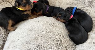 Our puppies are black and tan. Colors will vary depending on the parent dogs.