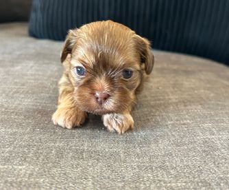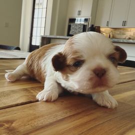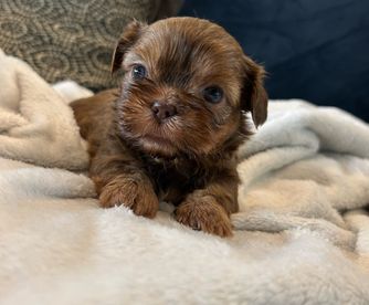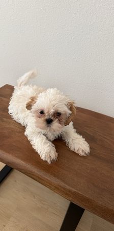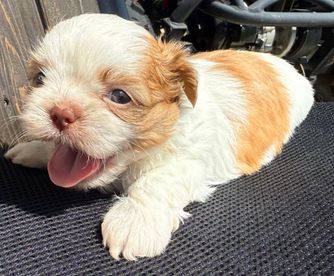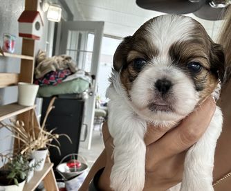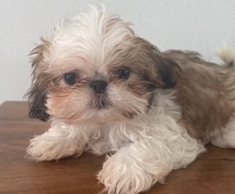 Alina is a 4-month-old female Shih Tzu who weighs about 4 lbs. She is AKC certified, has received her first round of vaccinations, and comes with a health certificate and litter certificate. Alina is playful, affectionate, and ready to join a loving family.