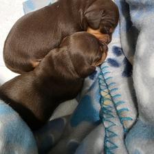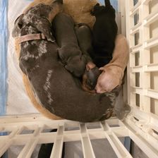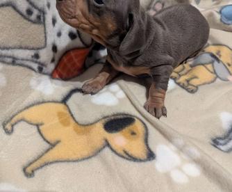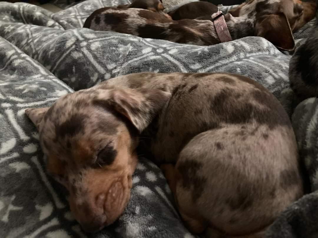 Our puppies include chocolate and tan, blue and tan, black and tan, and dapple. Colors will vary depending on the parent dogs.