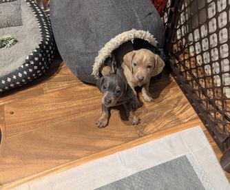 I expanded their space this week and will slowly reduce the presence of the puppy pads. They are doing well leaving their bed to potty. Next week, we will start going outside as their curiosity peaks and they continue learning to explore.