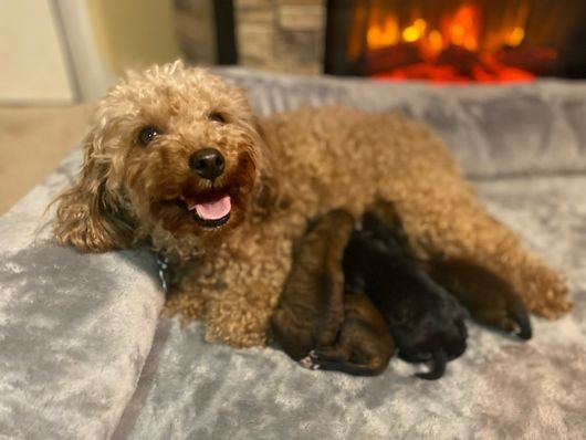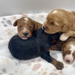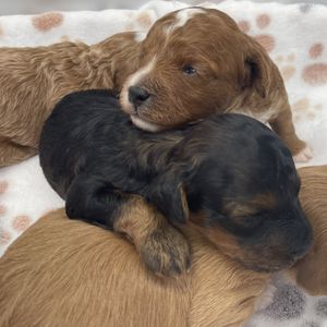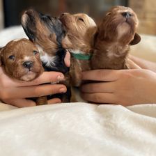 This stunning litter is as precious as they come! Devoted mommy Cupcake and Sweet daddy Kipper love to snuggle and are excellent companions, and their beautiful babies will be too. These gorgeous little ones are being raised under the watchful and caring eye of our family, and are be socialized with children and animals in the house. We believe a puppies upbringing begins with the care of the parents and the mother‘s health while they are in utero and raise them in a way we would want somebody to raise our own future canine family member. If you’re ready for your next companion, consider a cava poo as an excellent choice. Several puppies we have raised have gone home to be companion therapy dogs and also for retirees, families and singles alike. They will soon be ready to share their love with you.
