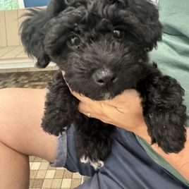 Cupcake is a precious mini poodle that adores her family. She loves lap cuddles and sofa time. She is bright, intelligent and enjoys greetings visitors or warming their laps. She loves to chase balls and get treats. She is clever and also enjoys car rides. She is DNA tested by Embark. She weighs approximately 11 pounds.