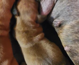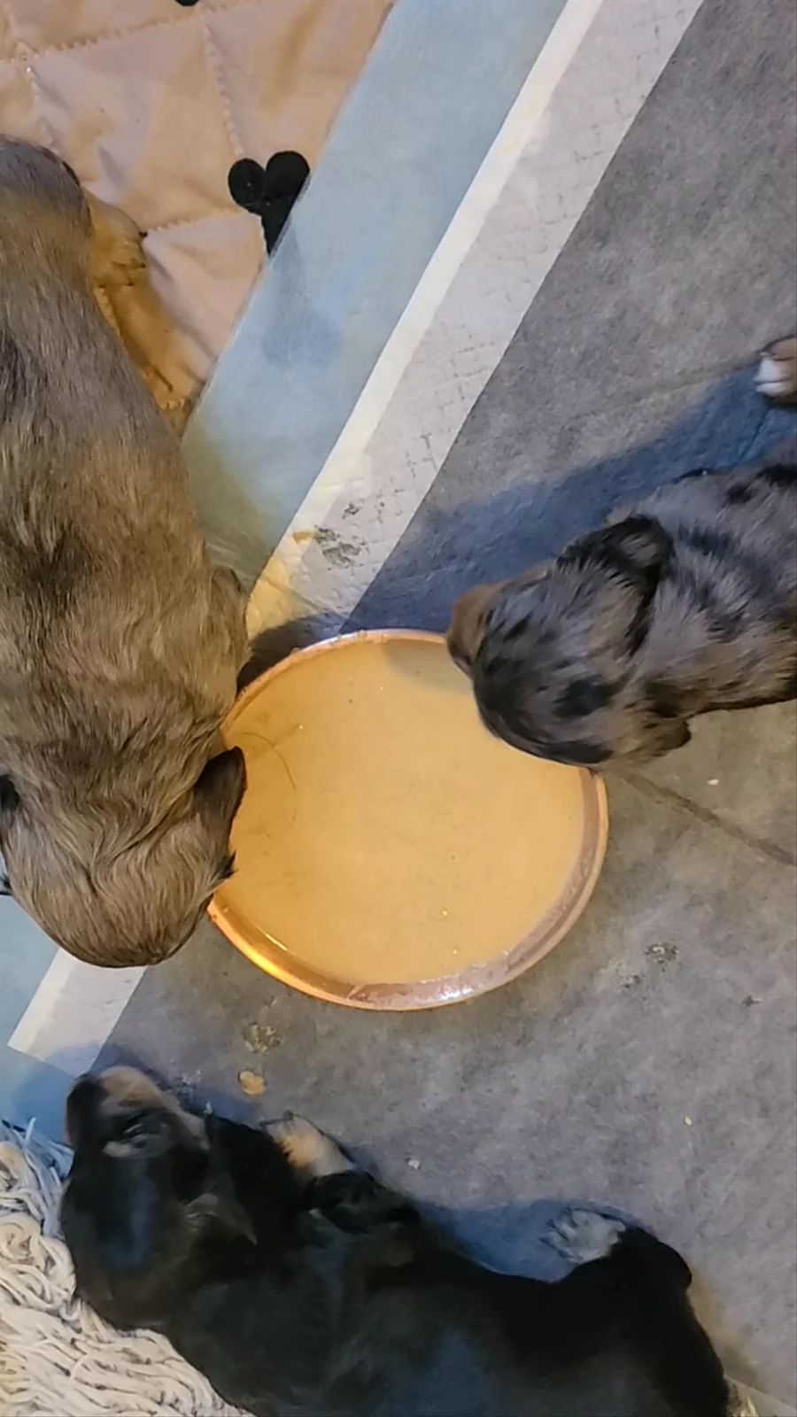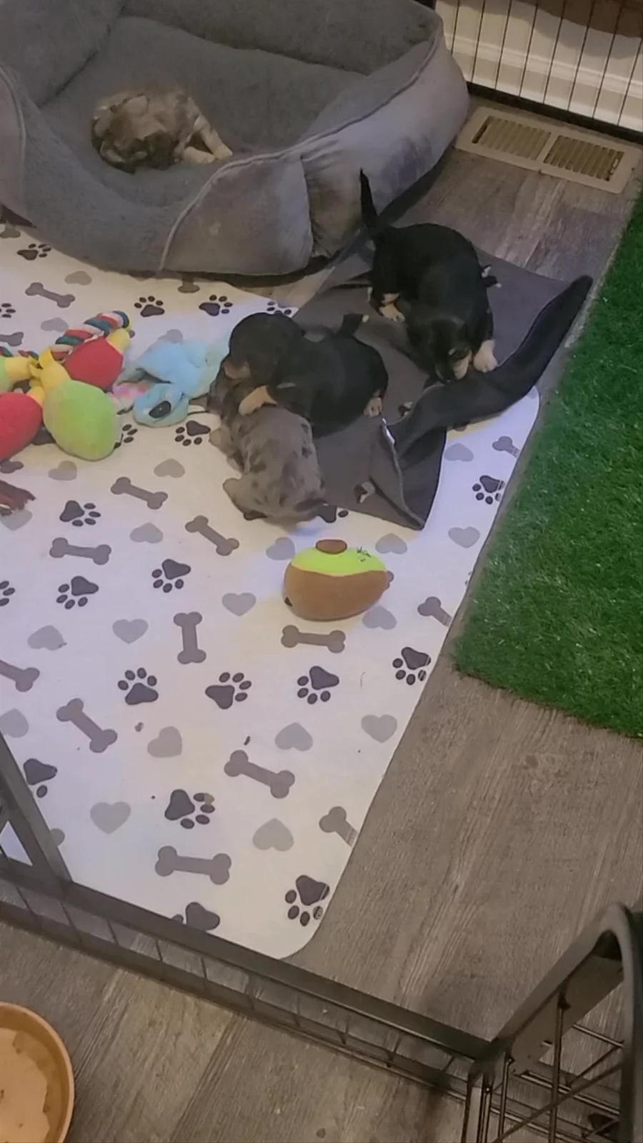 They are eating and playing now. Potty training on a grass mat has started and they doing well