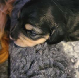 Susan was very knowledgeable about the mini dachshund breed and had a long phone conversation with us answering all our questions regarding their care. We have had our puppy for 2 weeks and she is healthy, playful and sweet. Susan started pee pad training and our puppy has been doing well with that.
