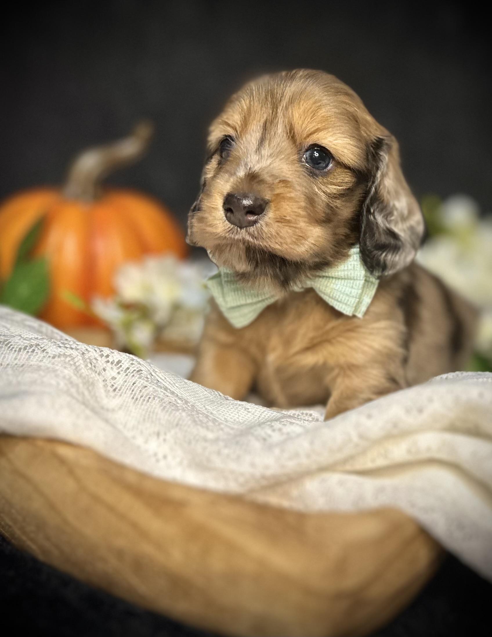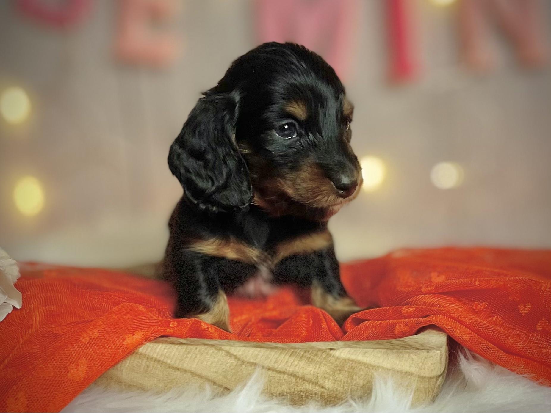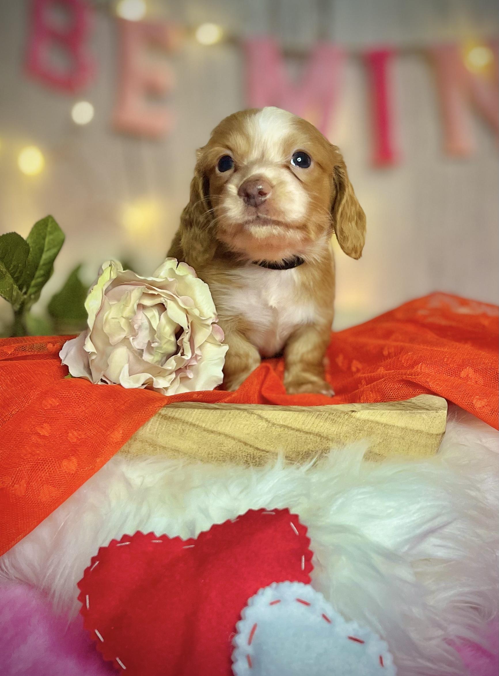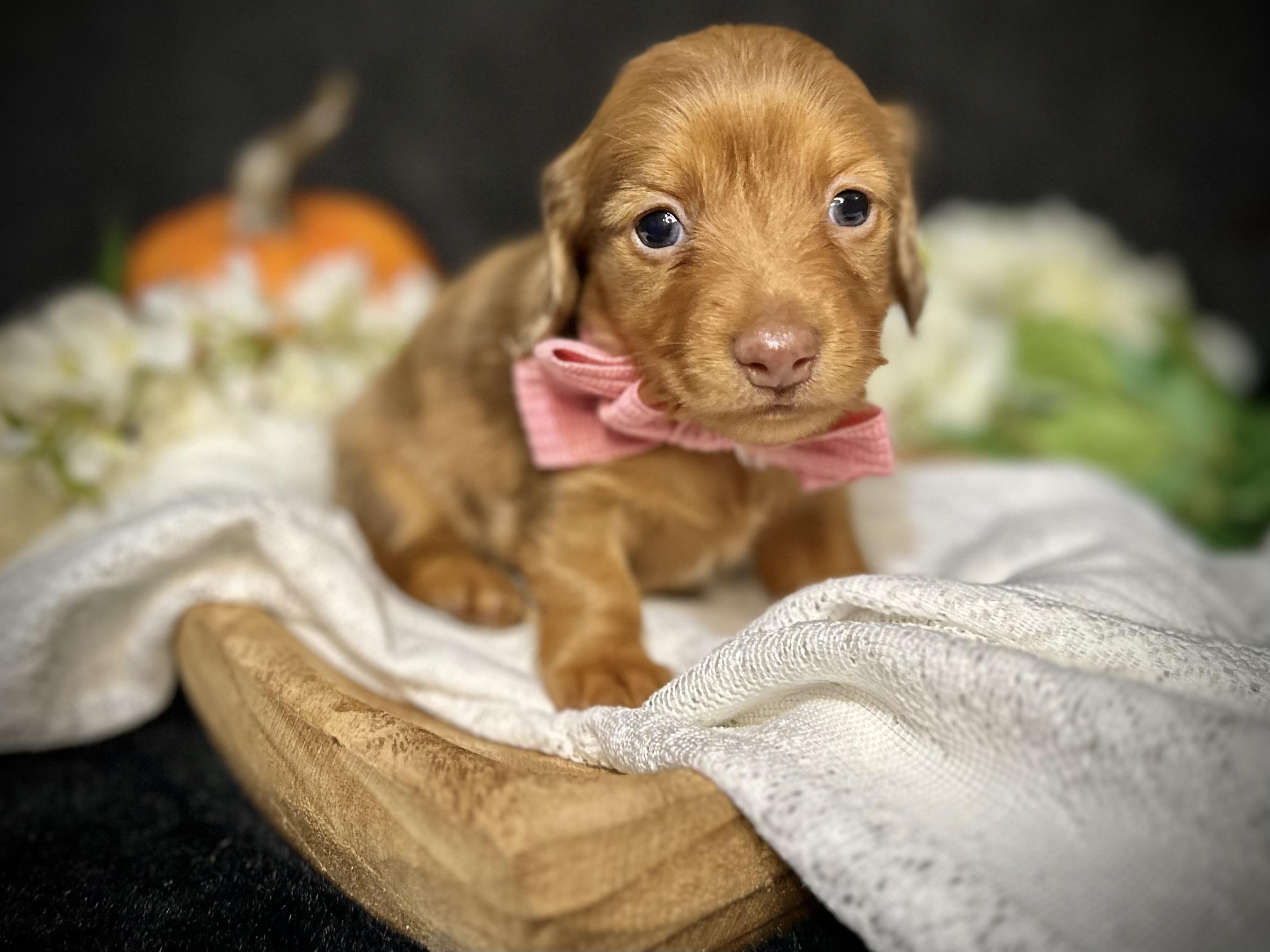 Our puppies include red, chocolate and tan, black and tan, and dapple. Colors will vary depending on the parent dogs.