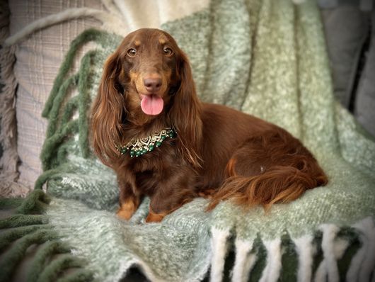 Willow is a female Dachshund. Carefully selected as a great representative of her breed, Jessica decided to make her part of their program. Jessica has passed Good Dog’s screening process, which involved a review of their breeding practices, environment, and the mental and physical health of their dogs.