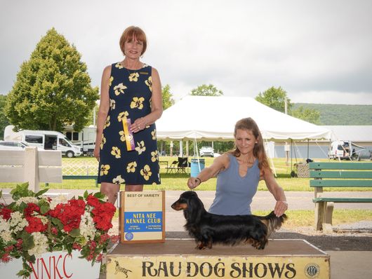 AKC GCH Dolly is a female Dachshund. Carefully selected as a great representative of her breed, Jessica decided to make her part of their program. Jessica has passed Good Dog’s screening process, which involved a review of their breeding practices, environment, and the mental and physical health of their dogs.