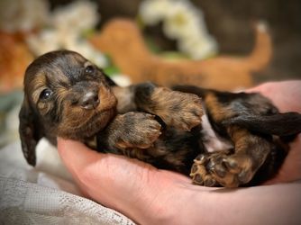 I'm Jessica N., the breeder behind Jessica Louise Dachshunds located in North Port, FL. We love this breed and do everything we can to help it thrive. We give each of our dogs and puppies the best care that we can. We built our program with care and intention in every step. We are passionate about the health and well-being of this breed, and it is our goal to provide each dog that comes from our program with a solid foundation of good health, neurological development, and loving care.