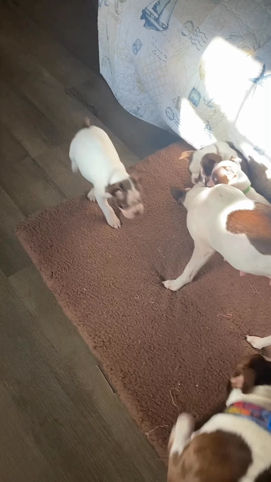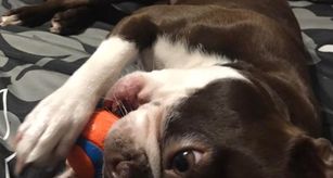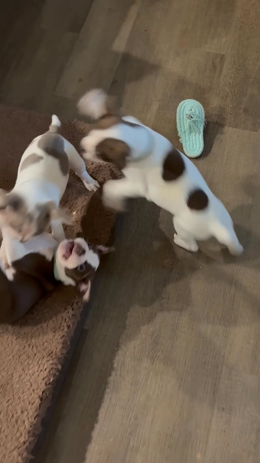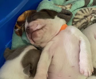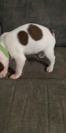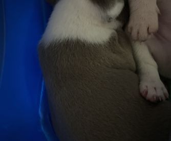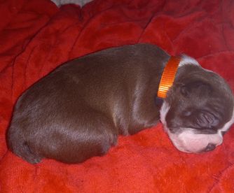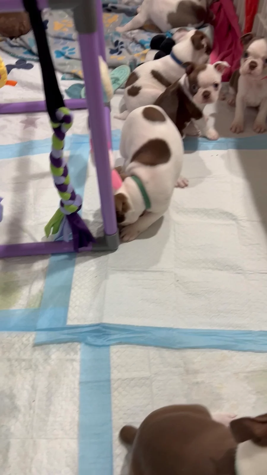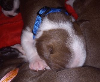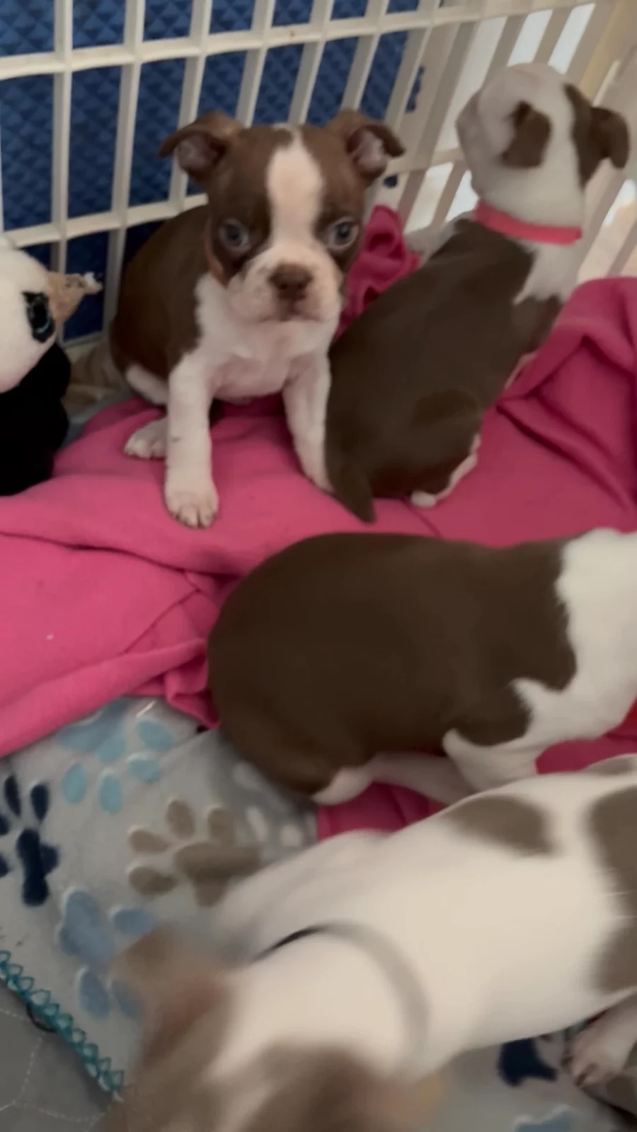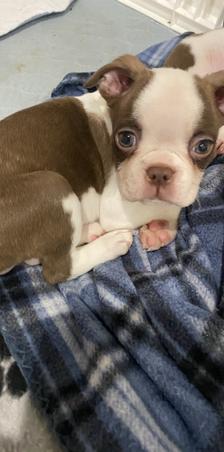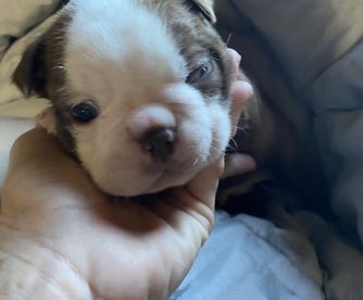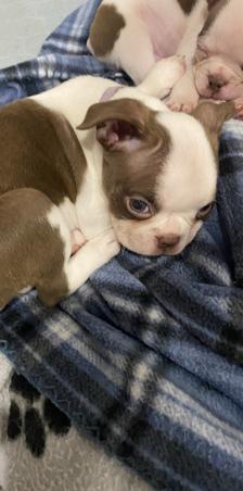 Beautiful brown and white Boston male throws beautiful healthy babies