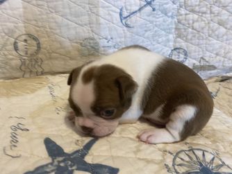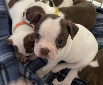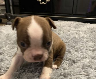 “CKC red/ white and brindle/ white Boston terrier puppies comes with first round of shots ..dewormed with vet visits to make sure the puppies are healthy for there new homes. 150.00 Non -refundable deposit for hold on a loving Boston terrier puppy of your choice.”