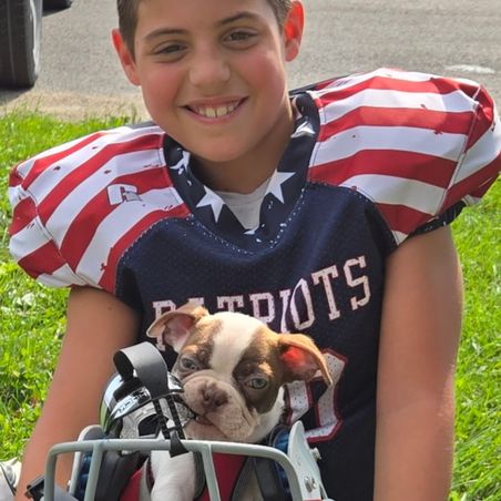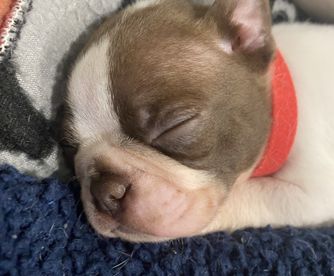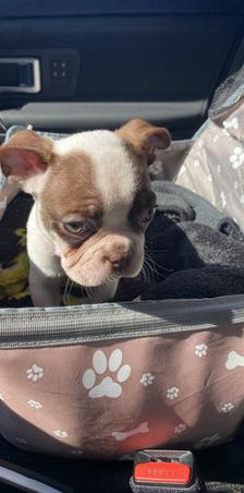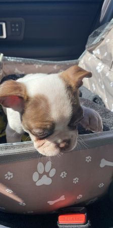 Evie is a red and white Boston terrier short an stumpy never got any bigger than 18 lbs when not pregnant she is a loving sweetheart and has the most beautiful babies .. she is getting on the older side of life 8 years old ..and she will not be having many more litters . To protect her health and age with grace ..as she is also our big babie and we want her to be around forever ..🐶🐾🫶